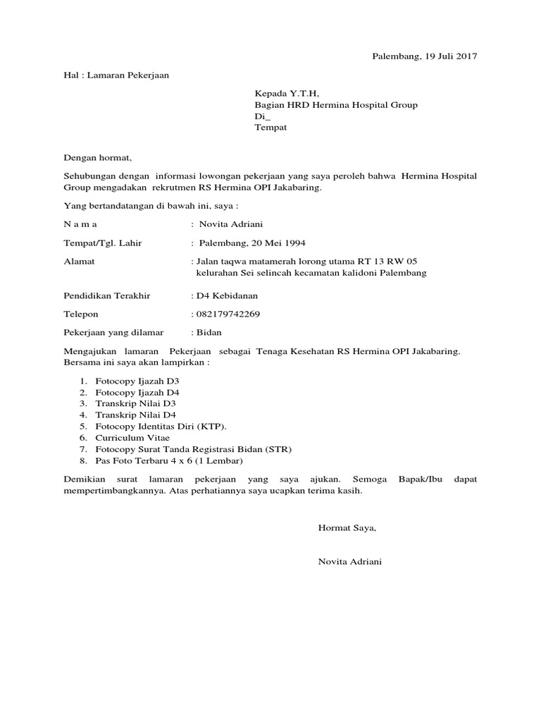 Jadi buat kalian yang lagi melamar pekerjaan dan mencari pekerjaan, silahkan. Makalah contoh iklan contoh teks contoh paragraf contoh proposal contoh puisi dan contoh contoh lainnya serta pengertian menurut para ahli untuk anda yang sedang mencari artikel tentang contoh surat lamaran rumah sakit tulis tangan. Contoh surat izin sakit ini bisa kamu gunakan untuk keperluan tidak masuk sekolah, kuliah, atau pun kerja. Ananda telah didiagnosa sakit oleh dokter dan disarankan untuk bedrest selama dua hari. Lamaran menjadi guru sd kepada yth: